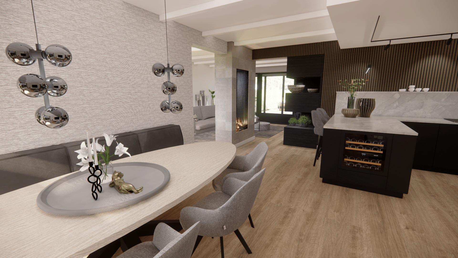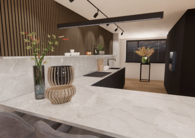 Bij het ontwerp van deze stadsvilla moest rekening worden gehouden met de ruimte en functionaliteit van elke kamer, evenals de esthetiek van het geheel. Een goede balans tussen stijlvolle decoratie en praktische indelingen is dan ook essentieel. Door hoogwaardige materialen te gebruiken en slimme ruimte-oplossingen te plaatsen zoals de vrijstaande haard, wordt deze stadsvilla zeker een luxe, comfortabel en functioneel thuis.